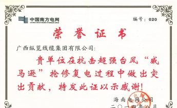 全國電線電纜產(chǎn)品質量監(jiān)管AA級企業(yè),全國重合同守信用單位,廣西“二十五”電線電纜產(chǎn)業(yè)重點扶持企業(yè),國家強制性產(chǎn)品CCC認證